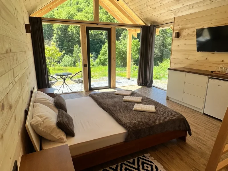 In der Kolyba für 80 Personen können Sie von der Speisekarte der transkarpatischen und ukrainischen Küche essen. Es besteht die Möglichkeit, auf dem Grill zu kochen. Die Kolyba kann für besondere Anlässe, Hochzeiten und Firmenveranstaltungen genutzt werden.