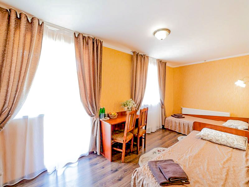 Eine Standardunterkunft (Möbel, Dusche, Fernseher, Kühlschrank) mit Behandlung und vier Mahlzeiten pro Tag kostet etwa 2.320 UAH. Ein geräumigeres “Improved”-Zimmer wird auf UAH 2.680 geschätzt. Eine große Junior Suite, die auch einen Couchtisch und ein Klappsofa hat, kostet UAH 3.000, eine Suite – UAH 4.200. Die Unterkunft in einem Cottage mit einer Fläche von 30 m2 wird auf UAH 2.320 geschätzt.