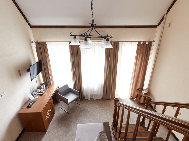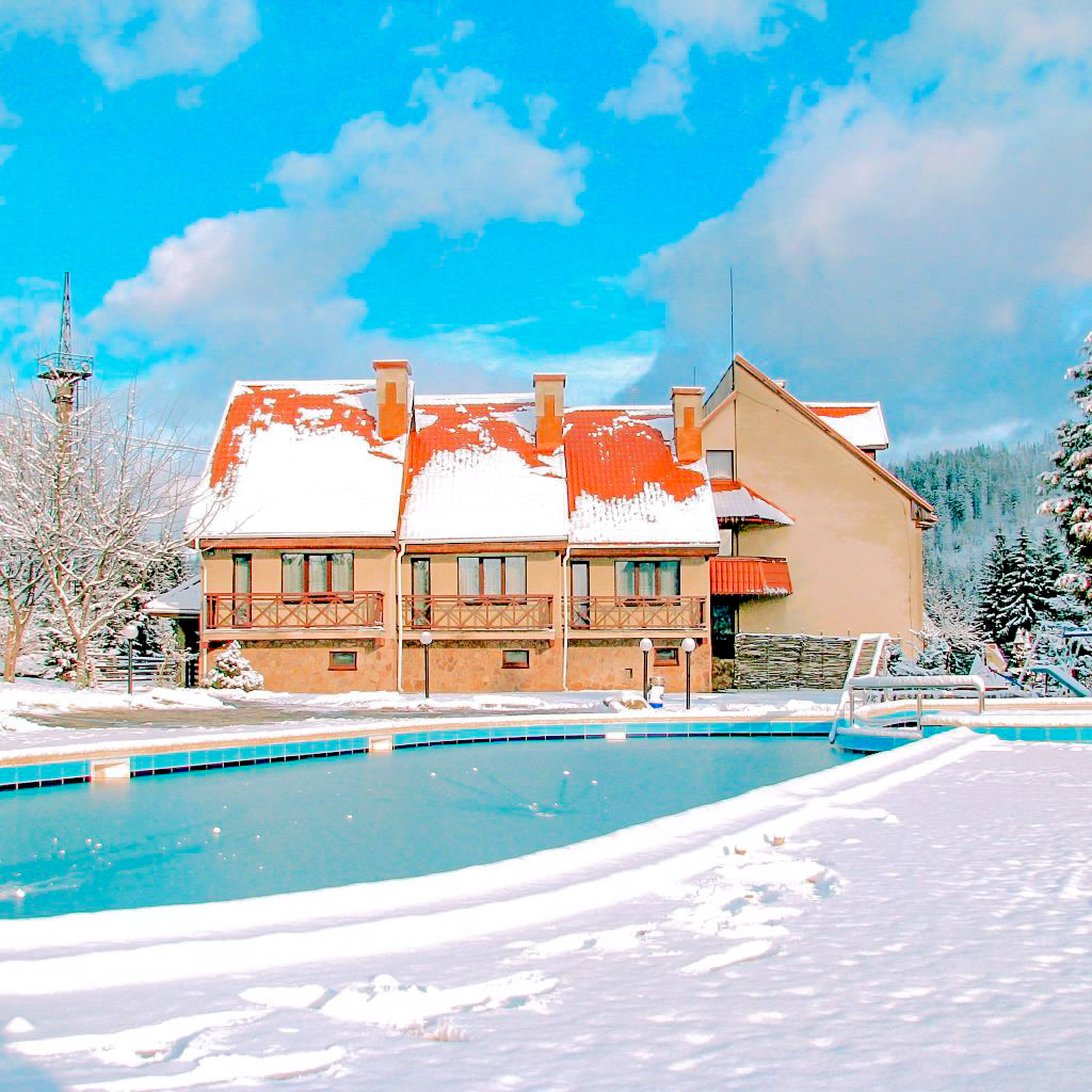 Das Hotel liegt in der Nähe von Slavskyi in einer ruhigen Gegend, umgeben von Bergen. Dies ist eine ideale Kombination aus Stille und unberührter Natur einerseits und den Vorteilen der Zivilisation andererseits, die der Schlüssel zu einer guten Erholung sind.