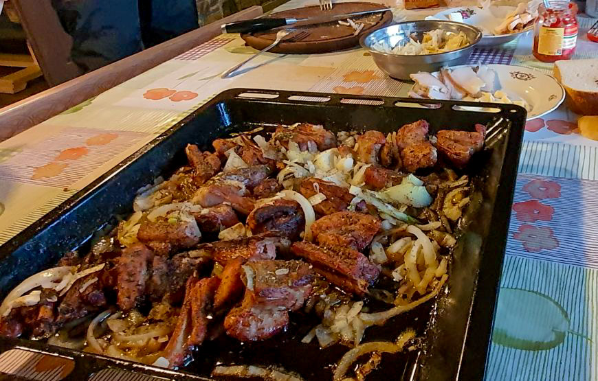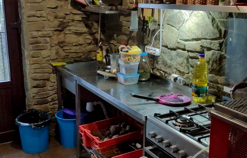Sechs-Personen-Zimmer in der Touristenherberge Yavirnyk in der Nähe der Stadt Velikiy Berezny und das Dorf Russkyi Mochar. Duschen und Toiletten zur gemeinsamen Nutzung befinden sich in einem separaten Raum. Es gibt immer kaltes und warmes Wasser. Es gibt kostenloses Wi-Fi auf dem Territorium.