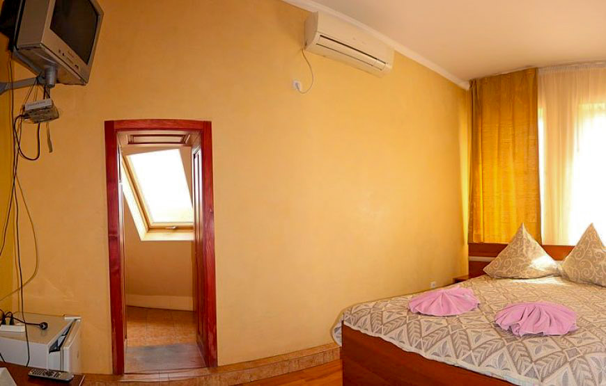 Doppelzimmer (4 Zimmer) – Doppelbett, Kleiderschrank, TV, Kühlschrank, Minibar, Klimaanlage, Badezimmer (WC, Waschbecken, Dusche).