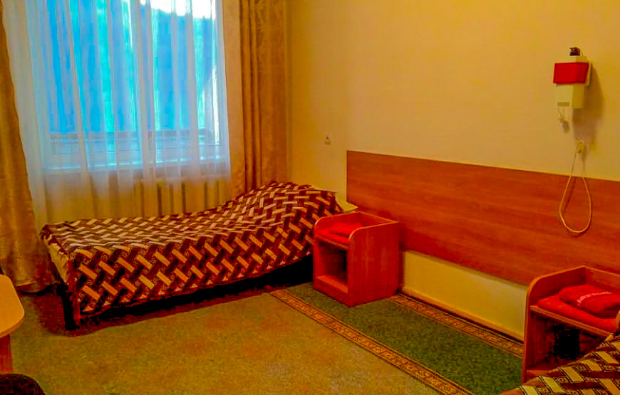 Ein komfortables Zimmer mit schönem Interieur und allen Annehmlichkeiten. Das Zimmer hat einen Kühlschrank, einen Fernseher, ein Badezimmer, eine Badewanne.