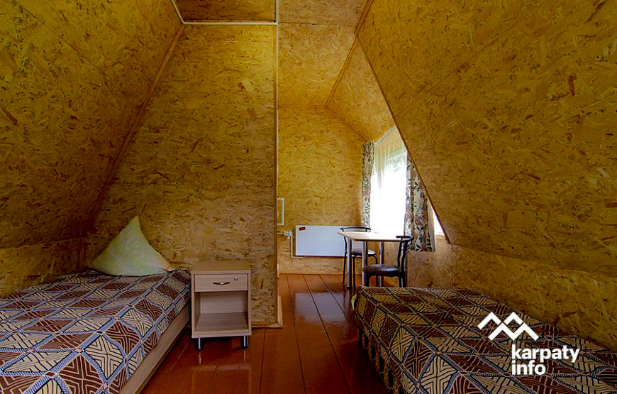Das Ferienhaus verfügt über 2 Einzelbetten, einen Tisch mit Stühlen, ein Badezimmer (Dusche, Toilette, Waschbecken).