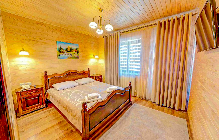 Dieses VIP-Class-Zimmer im Continental Hotel (Bukovel) eignet sich für eine Familie oder eine unterhaltsame Gesellschaft von 4 Erwachsenen.