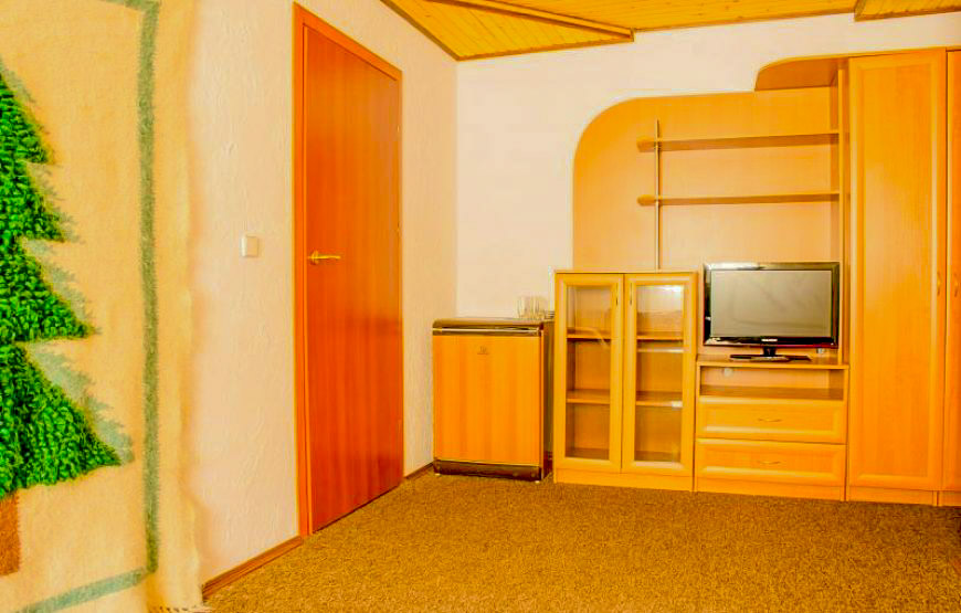 Die Suite umfasst: ein Schlafzimmer und ein Wohnzimmer, einen Korridor und ein Badezimmer. Das Zimmer verfügt über: zwei Fernseher, einen Kühlschrank, einen Haartrockner, eine weiche Ecke, einen Tisch. Das Zimmer ist für 4 Personen ausgelegt. Es gibt immer warmes und kaltes Wasser. Die Fläche des Zimmers beträgt 33 m², die Zimmer sind 17 m² und 10 m² groß.