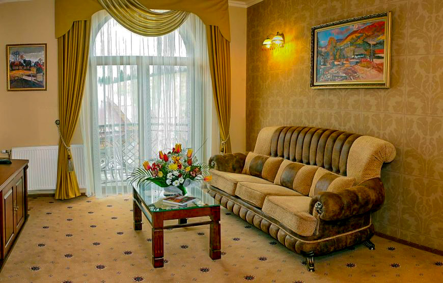 Номери категорії люкс в Гранд Готелі Пилипець дозволяють гостям насолоджуватися відпочинком в горах, затишно розмістившись в одній з 2-х кімнат номеру – вітальні або спальні.