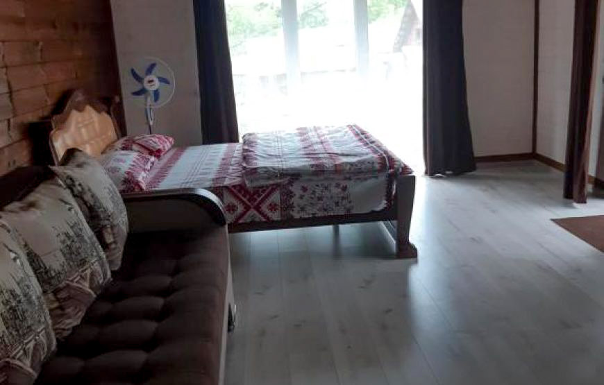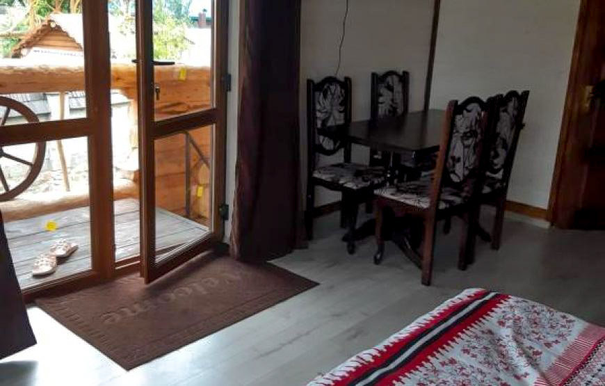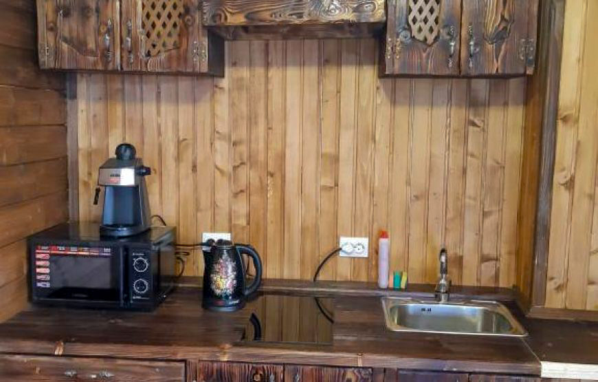 Suite-Zimmer im Gutshof “U Anastasiayki”. Jedes Zimmer hat ein Doppelbett, eigene Küche, eigenes Badezimmer, Gartenblick, Bergblick, Balkon, Terrasse, Grill, Kaffeemaschine, kostenloses WLAN, Badezimmer mit Dusche oder Badewanne, WC, Waschbecken.
