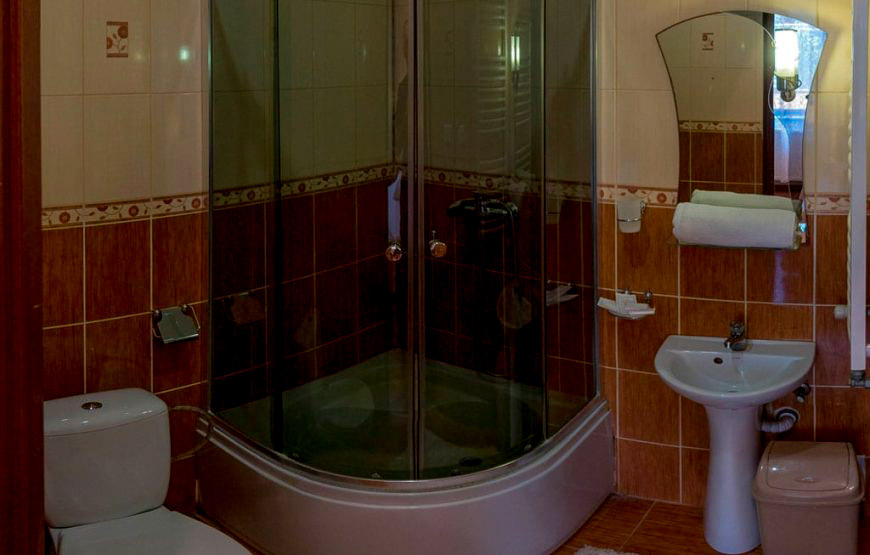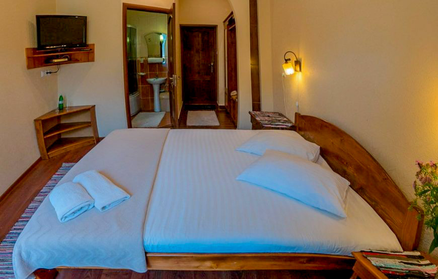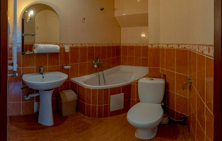 Junior Suite mit einem Doppelbett oder zwei Einzelbetten mit orthopädischen Matratzen, einem Badezimmer (Dusche oder Badewanne, Waschbecken, Toilette), einem Kleiderschrank, einem Fernseher, einem Satelliten-TV-Tuner und einem Balkon.