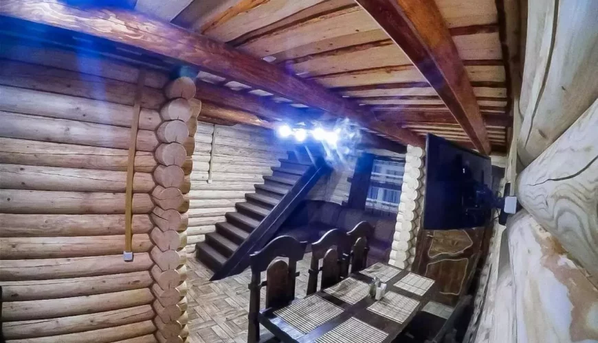Die zweistöckige Hütte verfügt über eine Küche und fünf 2-Zimmer-Suiten, jeweils mit Doppelbett, Kleiderschrank, Flachbildfernseher und Badezimmer (Dusche + WC + Waschbecken).