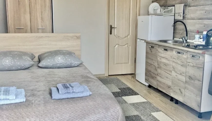 1-Bett-Zimmer im Erdgeschoss des privaten Herrenhaus “Adel” in Berehowe. Das Zimmer verfügt über ein separates Bad mit WC und Dusche, ein großes Doppelbett mit orthopädischer Matratze, Plasma-TV mit Kabel-TV, Wäschetrockner und Waschmaschine, Gemeinschaftsküche (für 4 Zimmer), die komplett mit Haushaltsgeräten und Utensilien ausgestattet ist.