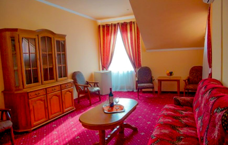 Das Super Lux-Zimmer ist ein modernes und gemütliches Zimmer mit Naturholzmöbeln, einem Fernseher, einer Klimaanlage, einem Kühlschrank, Geschirr und einem Badezimmer mit Duschkabine.