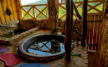Für diejenigen, die Jaremtsche besuchten, bereiteten Erholung, Bottiche und Ausflüge große Freude. Aber danach müssen Sie einen Snack haben. Das Restaurant Vedmeja Gora serviert ungarische und huzulische Küche, darunter atemberaubende Banos, Pilzsuppe mit Sahne oder Forelle. Es wird empfohlen, sie mit gut zubereiteten hausgemachten Tinkturen zu trinken.
