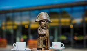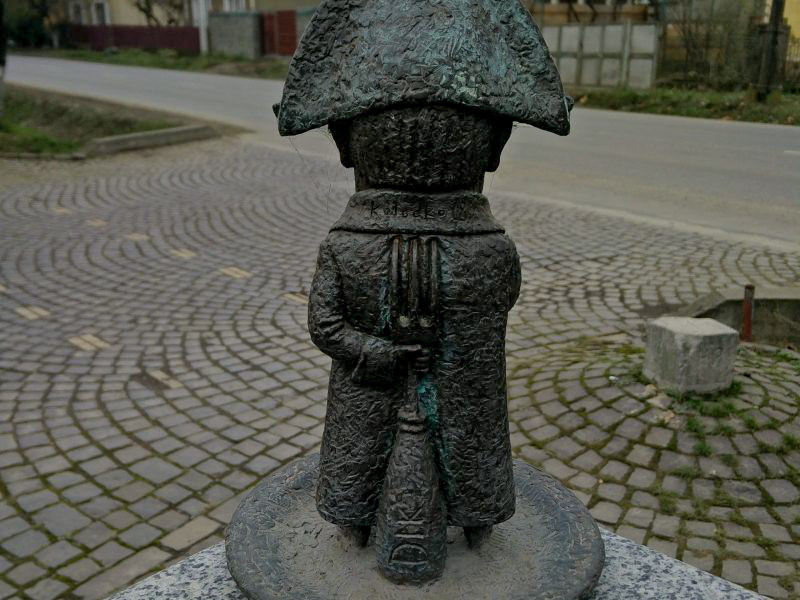 Die Miniskulptur “Napoleon” in Uschhorod wurde erst vor kurzem, am 5. Juli 2018, enthüllt. Es ist die vierunddreißigste Mini-Skulptur in der Stadt. Der Autor des Werkes ist Mikhail Kolodko. Zur Aufstellung der Skulptur sagte Kolodko, er habe nach einem Bild gesucht, das für alle Touristen aus der Ukraine und dem Ausland erkennbar sei. Die Skulptur wurde in der Nähe der Bäckerei DIK aufgestellt, die sich unter der folgenden Adresse befindet Uschhorod, Korytnyanska-Straße 6. Der französische Kaiser war selbst noch nie in der Hauptstadt gewesen Transkarpatien. In den 1960er Jahren wurde jedoch der Film Waterloo über Napoleon in Zakarpattia gedreht, und zwar unweit von Uschhorod. Die Dreharbeiten fanden in Nischne Solotwyno, Irljawa und Tschabaniwka statt
