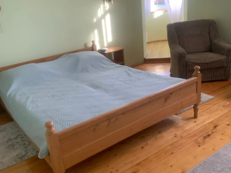 - Suite (consists of two rooms): in one room there is a large 2-sleeping bed, wardrobe, bedside tables, tower, TV, armchair; in the second room there is a sofa bed, table. Bathroom includes washbasin, toilet, bidet, bath.