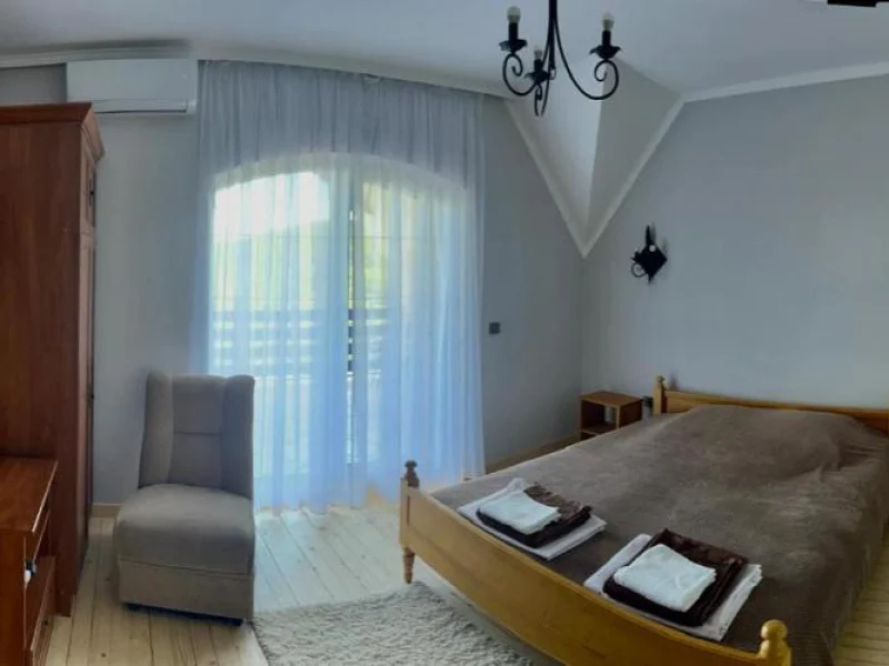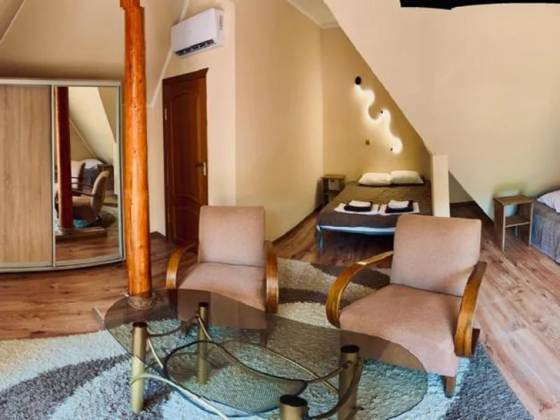 The Khust-Berehove national highway is 100 metres from the house. At a distance of 1 km there is a multidisciplinary sanatorium “Teplytsia” with thermal waters. The wine house offers wine tasting. The grapes used to make the drinks are grown in the vineyards of the southern part of the Shalankivska mountain in Vynogradiv district. Geographically, the area is located at the level of the Tokaj Mountain in Hungary.