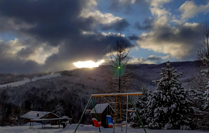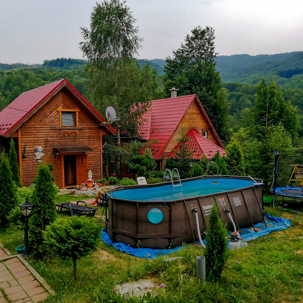 Two-story wooden house for 24 people. On the first floor there is a living room, four-bed and 2 three-bed rooms, a terrace. On the second floor there is a living room, 2 double, triple, 2 quadruple rooms.
