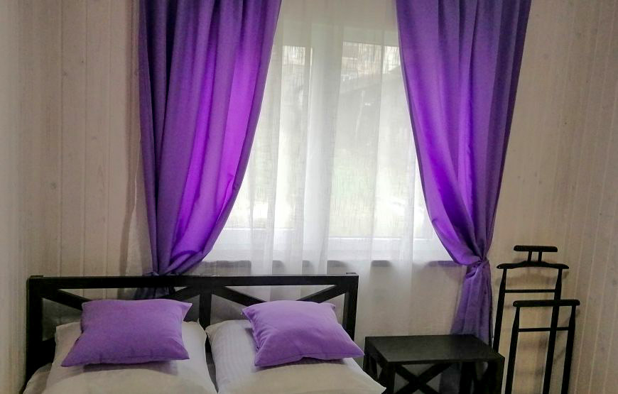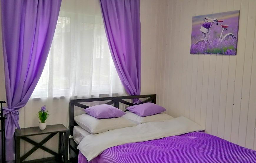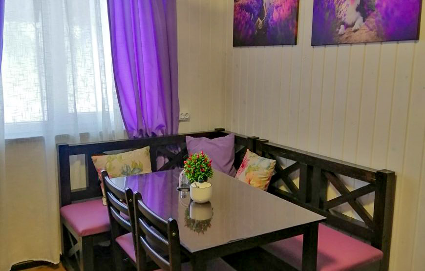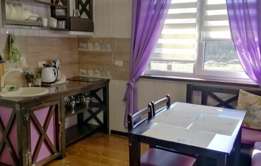 A comfortable wooden cottage can accommodate 6 people. The house has a kitchen with dishes and other attributes necessary for quality rest.