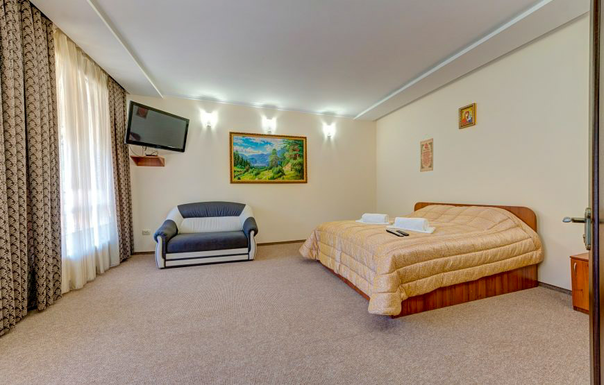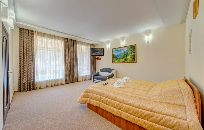 Cottage “Oglyadovy” is located in the village of Polyanytsia, Vyshnya tract on the territory of the tourist complex “Torba”. The distance to the first lift in Bukovel is 500 m. The two-story building consists of 8 blocks – separate apartments.