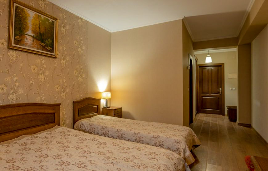 Cozy rooms with one large room with a double bed or two separate single beds, a separate bathroom with a shower. Some rooms additionally have a sofa.