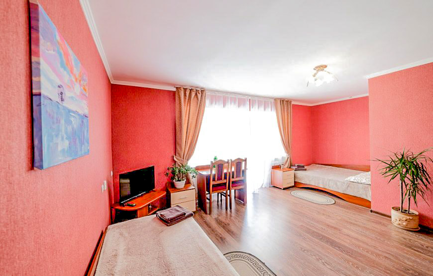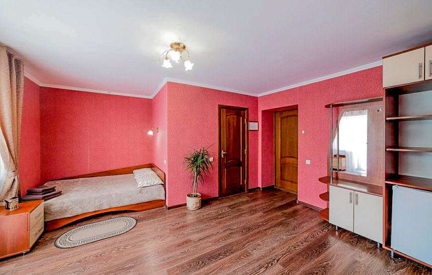 Improved one-room – a spacious room with an increased level of comfort. The room has a comfortable double bed (140×200 cm) and an additional single bed, a wardrobe, a table. A family of 2-3 people can comfortably stay here. Among the amenities and communications, the room has a TV, Wi-Fi, a refrigerator, and a bathroom (bathtub, sink, toilet, soap). The balcony offers a picturesque view of the mountains, the front yard and the fountain of the sanatorium. Superior one-room rooms are located on the first, second and third floors.