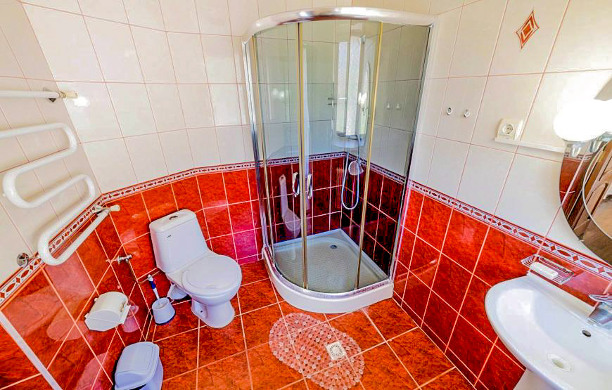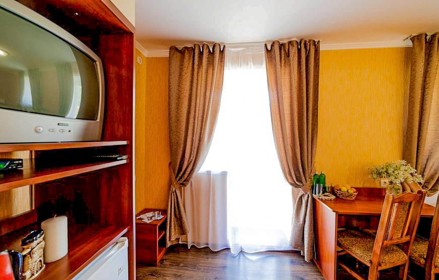 In the rooms of the “Standard” category, our guests have two single beds or one and a half beds for single occupancy with blankets and pillows. Each room of the Standard category includes television and Wi-Fi. The bathroom is equipped with a shower cabin, clean towels, soap, as well as the necessary sanitary ware (sink, toilet, towel dryer). In order to fully breathe in the fresh mountain air, it is enough to go out to the balcony, which is available in every room of this category. Standard rooms are located on the first, second and third floors.