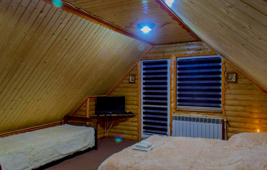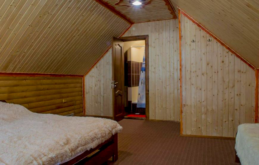Two three-bed rooms in the estate “Synevyrsky chardash”. Each room has a double and a single bed, a TV, an additional bed (folding bed), a bathroom (shower, toilet, sink).