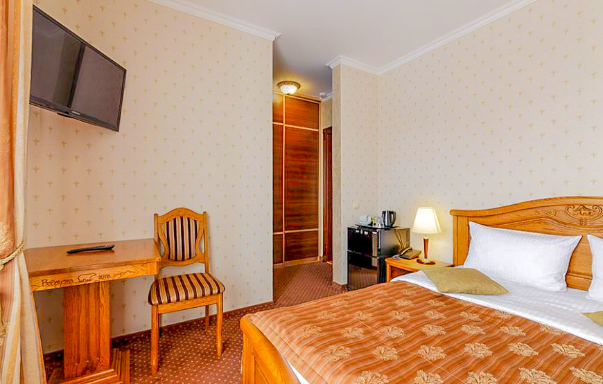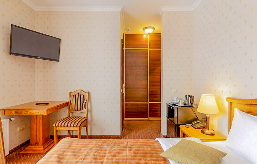 The “Standard Economy” room has everything necessary for 2 people. These are one-room apartments with a double bed, a separate shower room, a toilet and a balcony. The room also has a desk, a wardrobe, and a safe. A flat-screen TV with satellite channels and free Wi-Fi are available. The shower room has a hairdryer and a set of cosmetics.