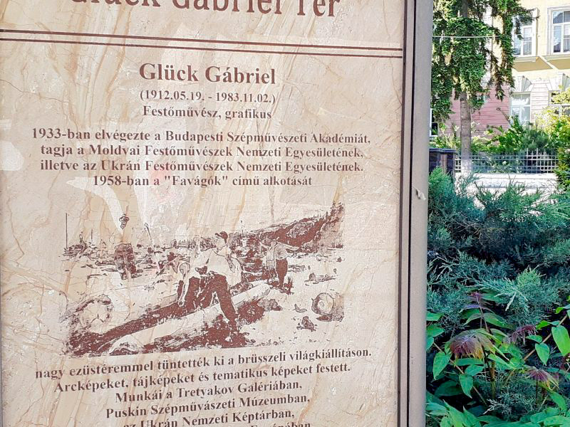 Mikhailo Kolodko came up with the idea to immortalise the famous artist back in 2011. It took the author a year to realise the idea. The author installed his masterpiece on the triangle between Vakarov and Pidhirna streets in the very centre of Uzhgorod (GPS 48.62579727 22.30283165). This sculpture is made in the form of a Willis off-roader (GAZ-67), a car that the famous artist Gavrylo Gluck used to drive. It is installed on a pedestal in the form of a stone block. Gavrylo Martynovych himself is recreated in the car at the wheel, and next to him is an easel and the painting “Loggers”, which brought fame to the artist.