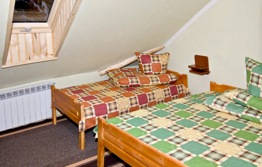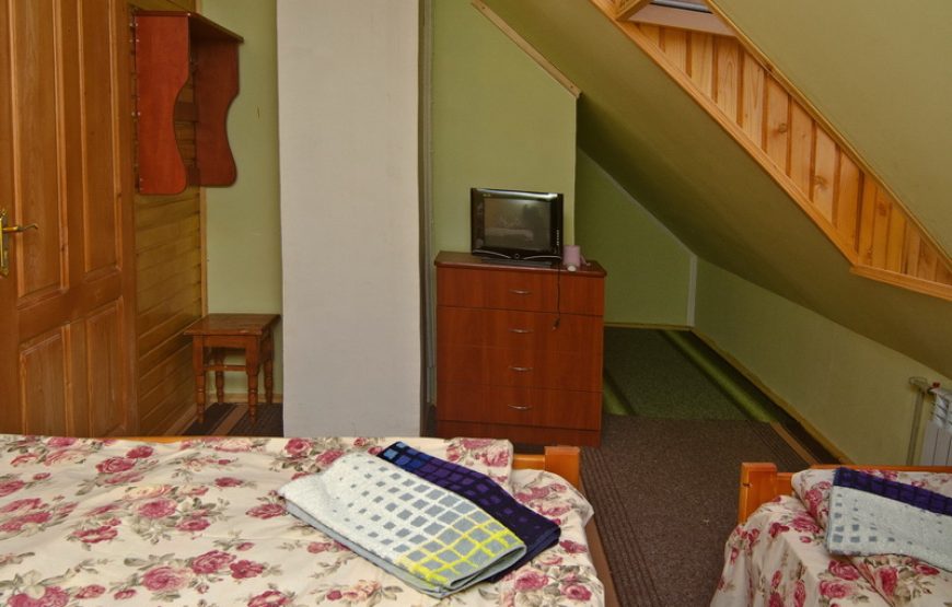 “3-місний” : одна кімната (12 кв.м), три односпальних ліжка, супутникове ТБ, санвузол (душова, унітаз, умивальник)
