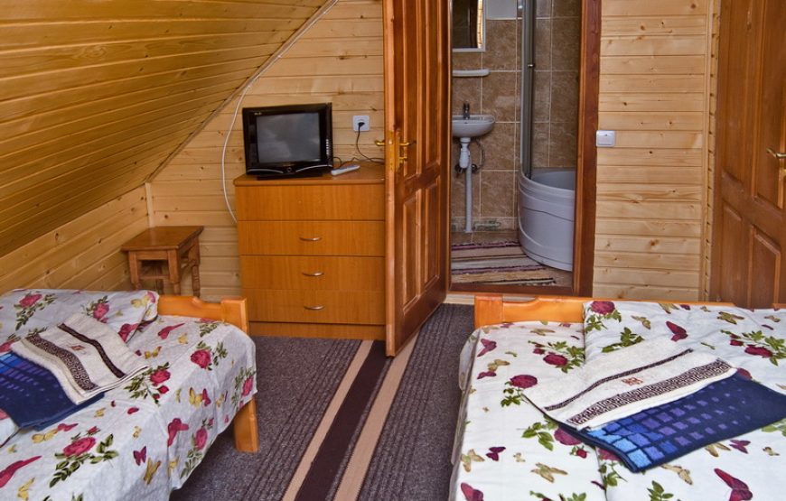 “2-місний” : одна комната (11 кв.м), два односпальних ліжка, супутникове ТБ, санвузол (душова, унітаз, умивальник)