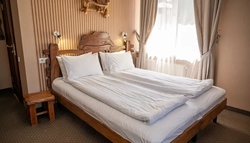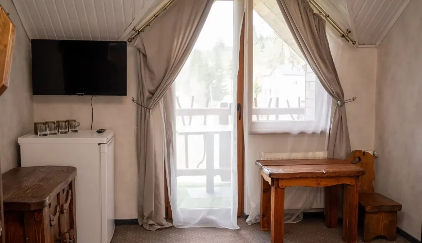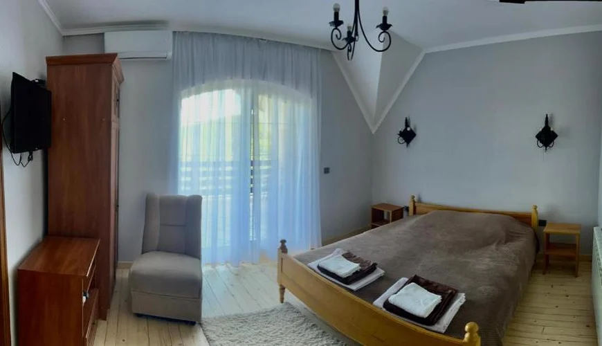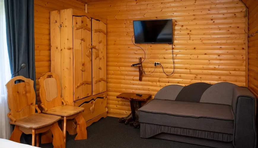 Просторі двокімнатні апартаменти з повноцінною кухнею, ідеальні для комфортного тривалого проживання або сімейного відпочинку. В одній із кімнат розміщене велике двоспальне ліжко, шафа, зручна робоча зона, телевізор та додатковий односпальний диван. Великі панорамні вікна наповнюють кімнату природним світлом і створюють затишну атмосферу. У другій кімнаті розташований просторий двоспальний диван. Кухня обладнана всією необхідною технікою та […]