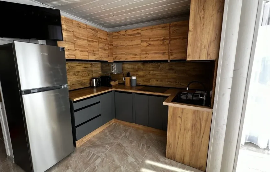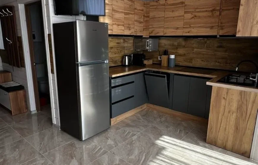 На добре обладнаній кухні є плита для самостійного приготування їжі, холодильник, посудомийна машина й все необхідне кухонне приладдя.