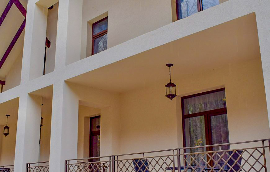 Вишуканий двокімнатний номер люкс площею 33кв.м., з двоспальним ліжком, великим розкладним диваном, меблями з натуральної деревини, теплою підлогою, плазмовим телевізором, супутниковим ТБ, Wi-fi, з терасою з видом на гори та гірську річку: