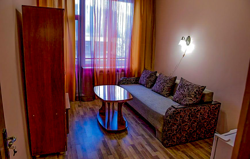 Комфортний номер із сучасним інтер’єром з усіма зручностями та балконом. У номері холодильник, телевізор, санвузл, душ. Водопостачання холодної та гарячої води цілодобове.