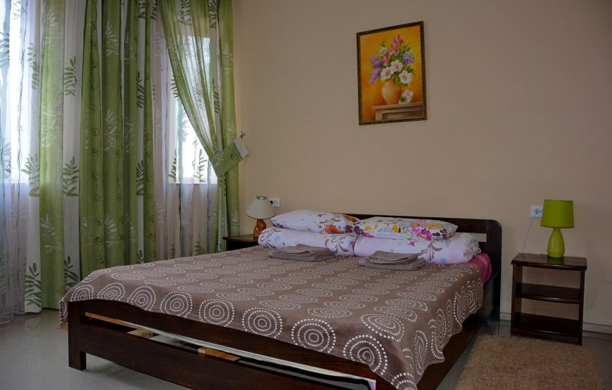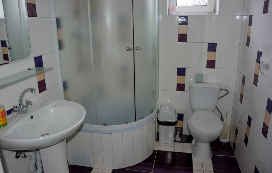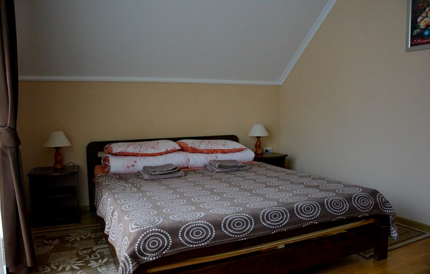 Двомісний номер у садибі Смерекова хата. У номері є двоспальне ліжко, шафа для одягу, телевізор, стіл зі стільцями, санвузол (душова кабіна, туалет, умивальник, фен).