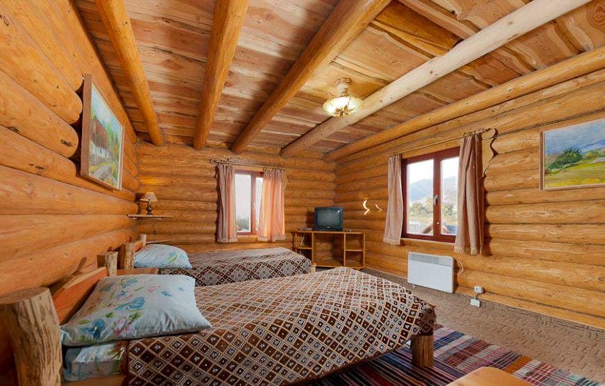 Двомісний номер класу Стандарт у туристичному комплексі Новий Сезон, що розташований у селі Вишка біля гірськолижного курорту Красія.