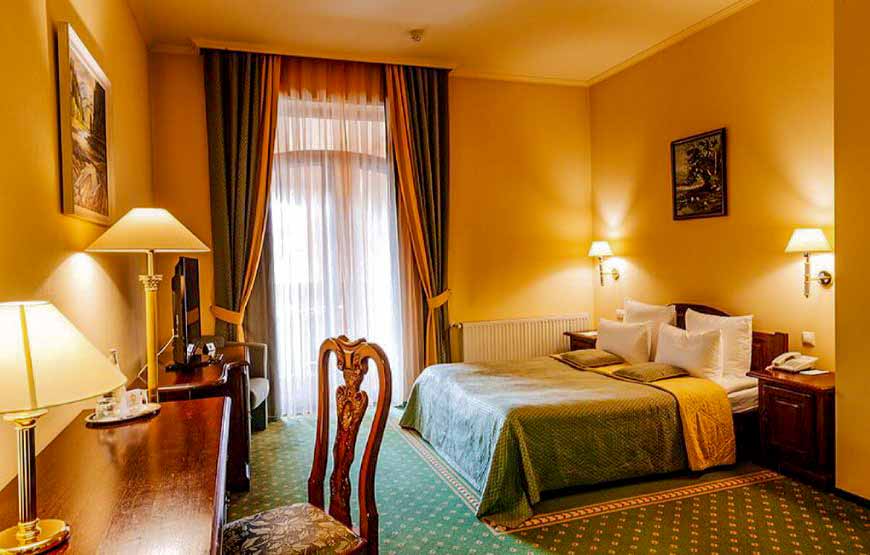 Просторий Двомісний Суперіор найкраще підходить для гостей, які надають перевагу комфортному відпочинку у тихій, спокійній атмосфері. Письмовий стіл та додатковий диван у кімнаті, передпокій з місткою шафою, ванна кімната з ванною та біде додають зручностей номеру. Два з трьох номерів категорії Двомісний Суперіор доповнені затишною терасою з видом на внутрішній дворик готелю.