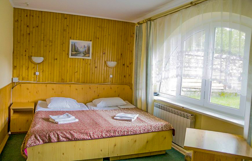 Номер типу Економ розміщений на першому цокольному поверсі, без балкону. Економ номер зручний для розміщення двох осіб. У номері є все необхідне для комфортного відпочинку.