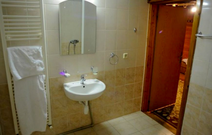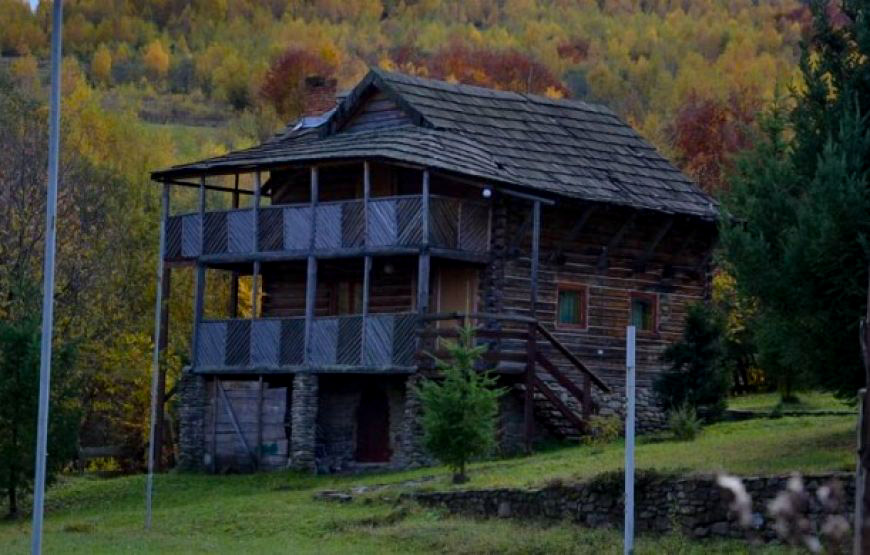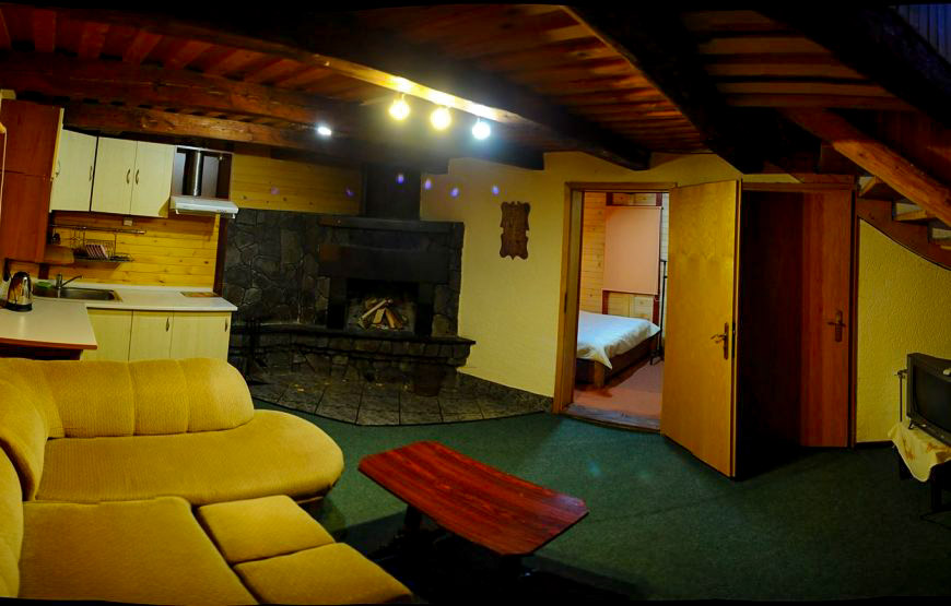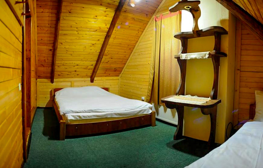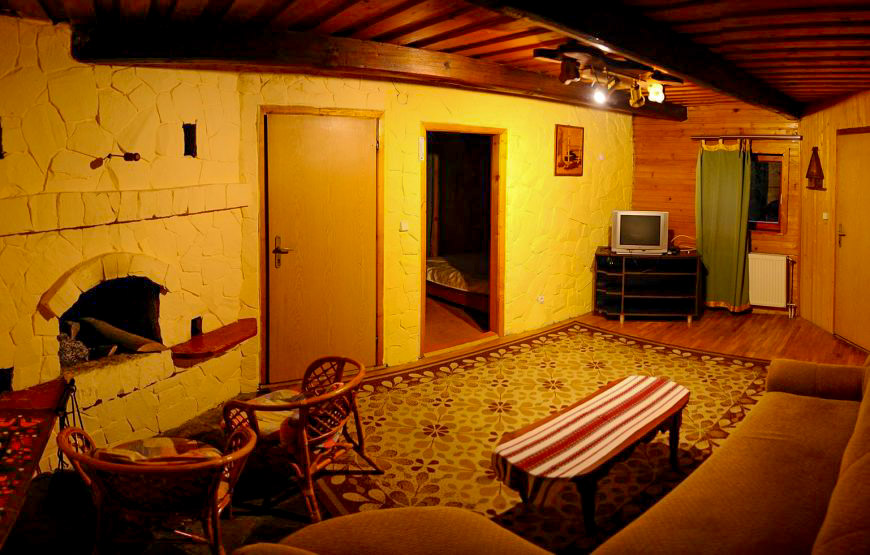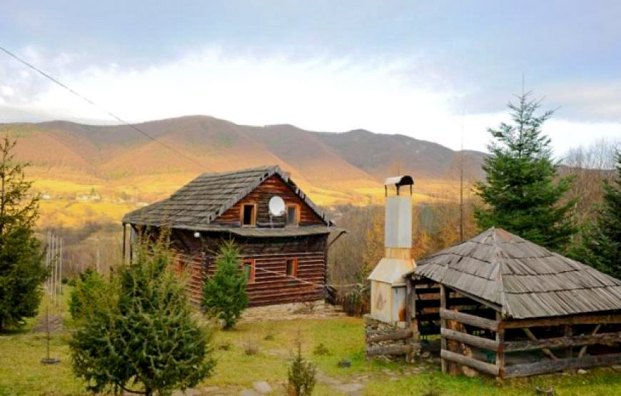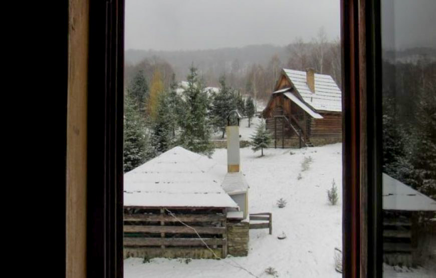 Побудований із екологічно чистого смерекового брусу. Щілини між брусом законопачені натуральним мохом, як це робили в давнину. І ззовні і з середини брус та всі деревяні частини нічим не оброблені, для збереження екологічної чистоти деревини.