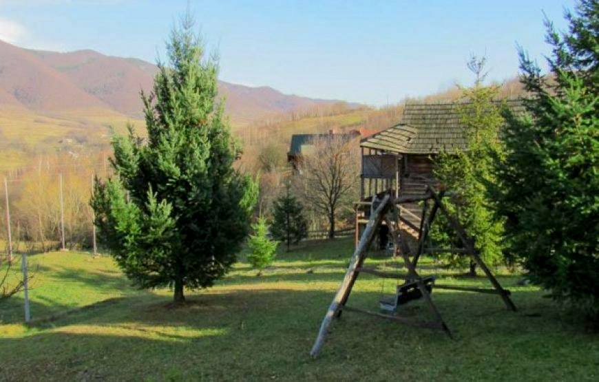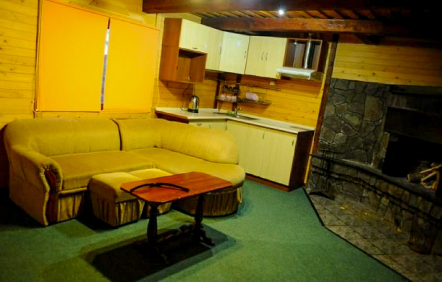 Трохи вище за котеджем на лісовій галявині, в оточенні тисових дерев та яличок, розташована бесідка з мангалом, де мешканці котеджу мають змогу приготувати собі страви на вогні та посидіти на свіжому повтрі як взимку так і влітку.