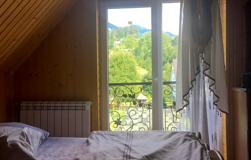 Котедж у садибі “У Анастасійки”. У котеджі є дві спальні, двоспальні ліжка, власна кухня, 2 ванні кімнати, вид на сад, вид на гори, балкон, тераса, барбекю, Кавоварка, безкоштовний Wi-Fi,санвузол з душем або ванною, туалетом, умивальником.