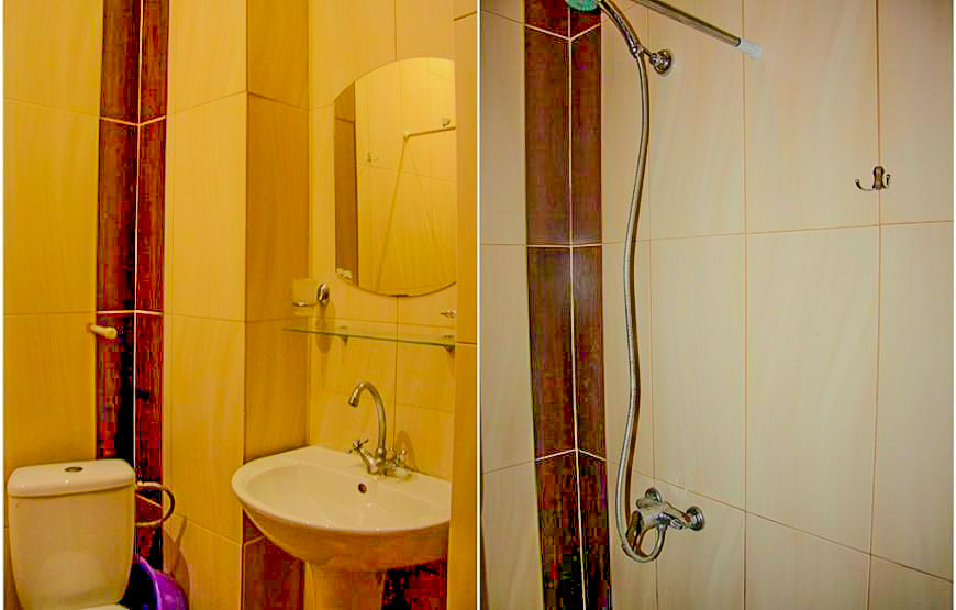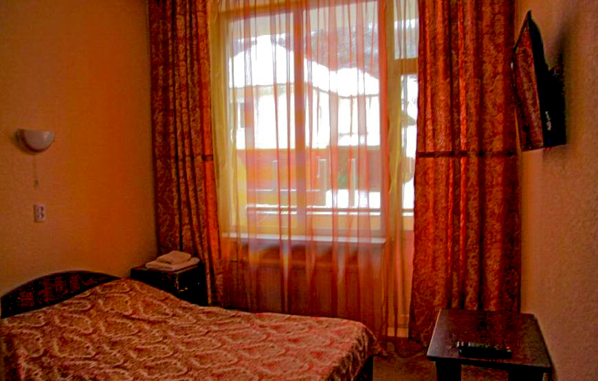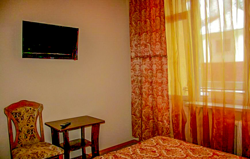 Комфортний номер із сучасним інтер’єром з усіма зручностями та балконом. У номері холодильник телевізор, санвузл з душем.