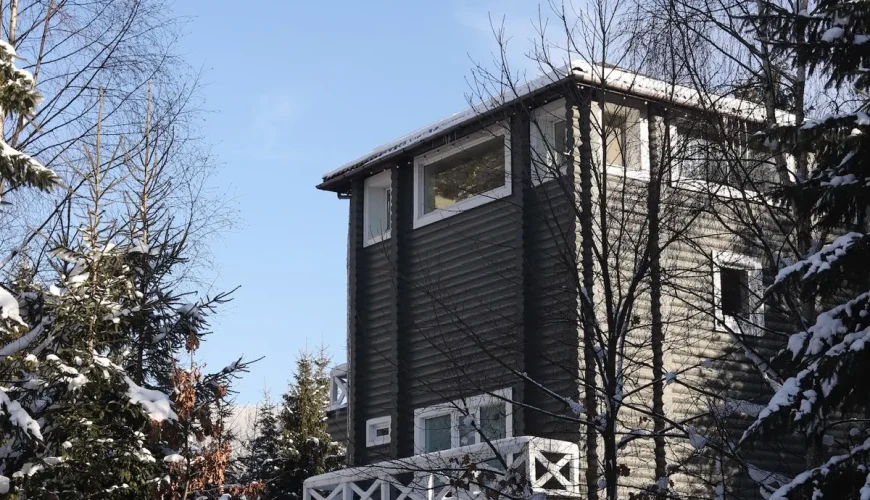 Пятиповерховий преміум-котедж Вежа на території котеджного комплексу “Маєток Ліс і Гори” у селі Поляниця поблизу гірськолижного курорту Буковель.