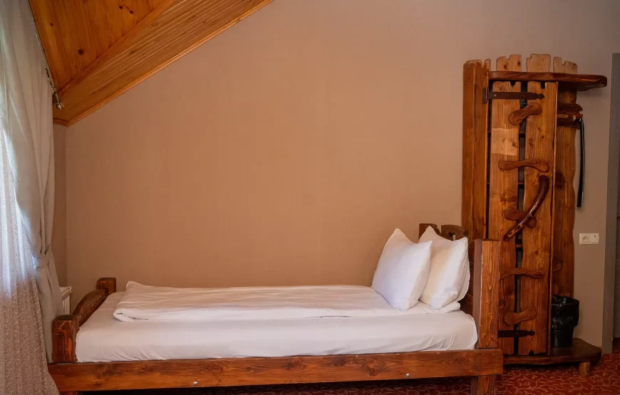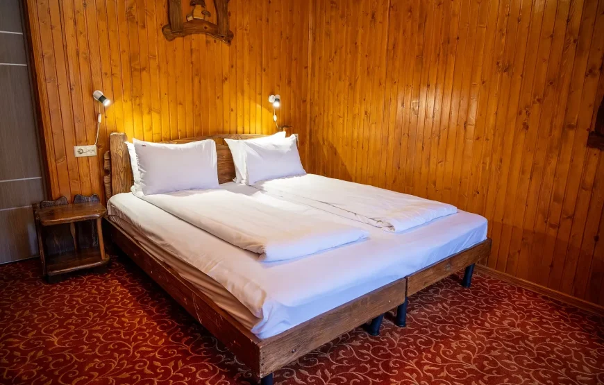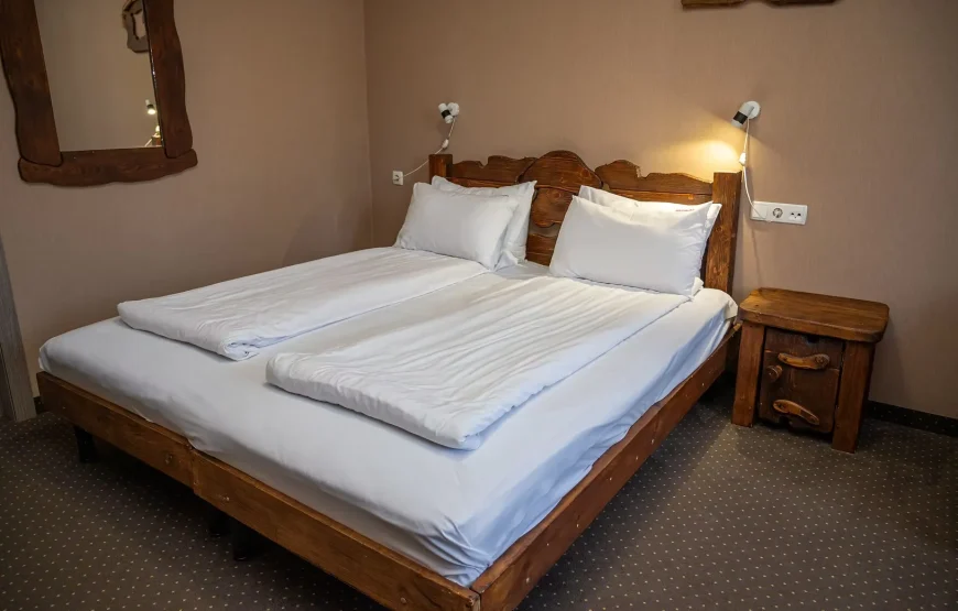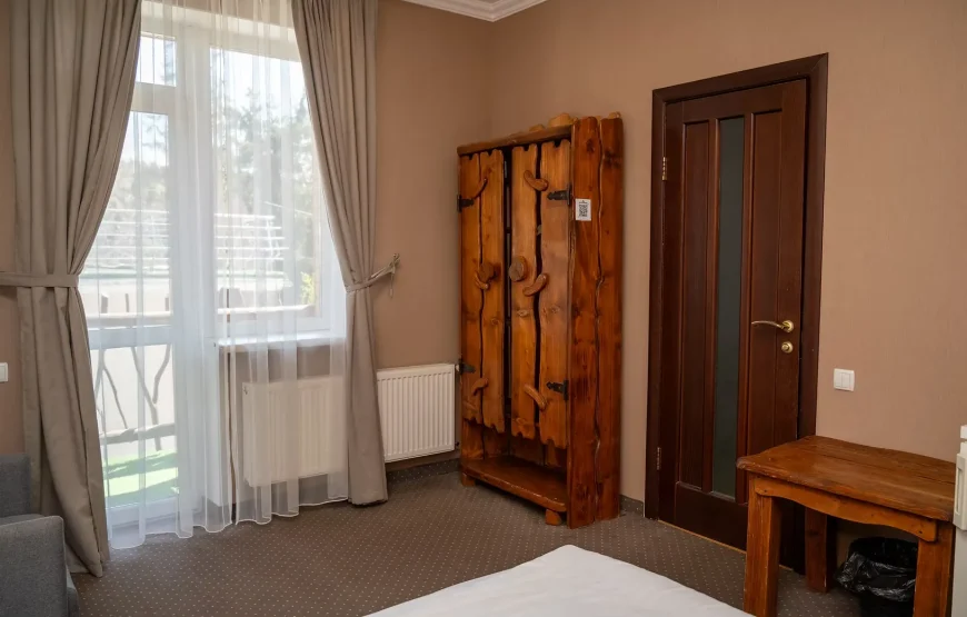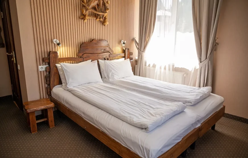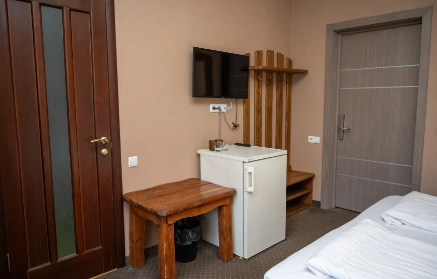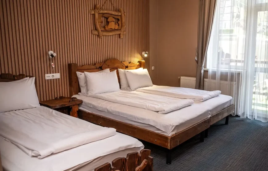 Сучасний однокімнатний номер із стильним дизайнерським інтер’єром, який ідеально підходить для комфортного розміщення двох або трьох гостей. Площа номера — до 15 кв. м. Зручні ліжка з ортопедичними матрацами забезпечують повноцінний відпочинок, при цьому можливе розміщення на окремих односпальних ліжках.