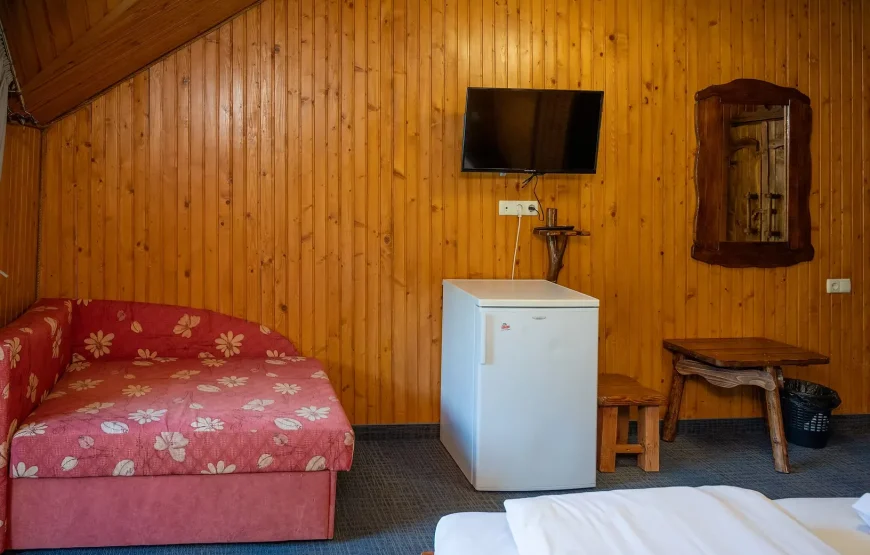Для зручності гостей у номері передбачені сейф, Smart TV, безкоштовний Wi-Fi, телефон внутрішнього зв’язку, холодильник, фен, капці та комплект рушників.
