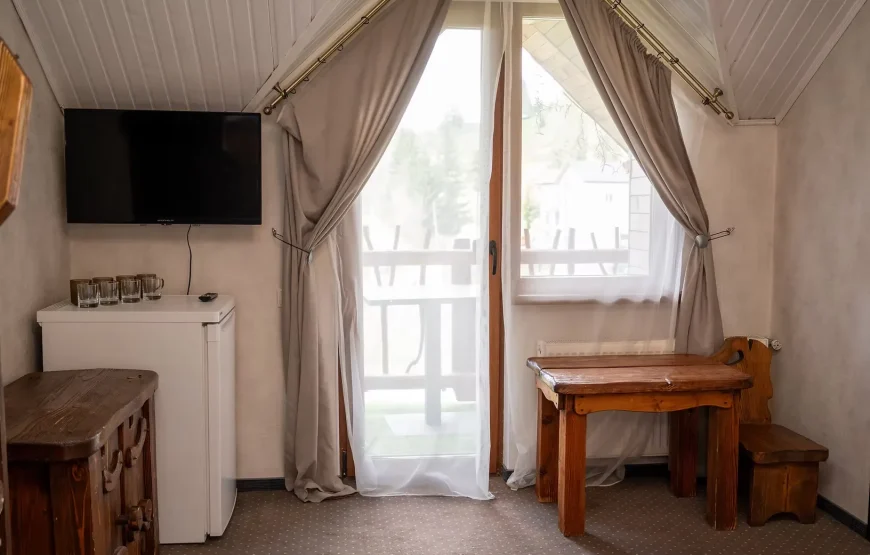 До послуг гостей сейф, Smart TV, безкоштовний Wi-Fi, телефон внутрішнього зв’язку, холодильник, фен, капці та комплект рушників. Великий балкон відкриває мальовничий вид на гірські пейзажі, створюючи особливу атмосферу відпочинку.