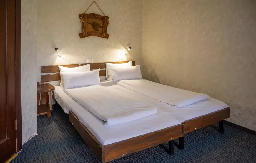 Просторий двокімнатний номер, ідеальний для сімейного відпочинку або компанії друзів. У номері передбачені два зручні двоспальні ліжка з ортопедичними матрацами, а також м’які подушки й ковдри, що забезпечують повноцінний та комфортний сон.
