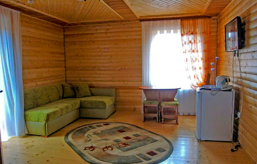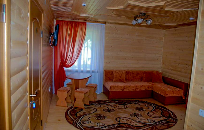 Люкс 3-х кімнатний (3-х кімнатний, 4-6 місний номер з балконом, повністю оздоблений натуральною деревиною, загальною площею – 58 м. кв.; у одному з номерів є камін).