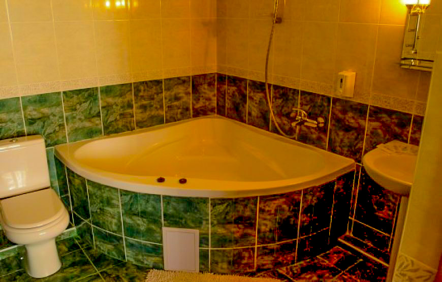 Номери 1-кімнатні, без балкона (крім 5 поверха – мансарда 3 номера). У номері є передпокій, санвузол 4,5 кв. м. з кутовою ванною і феном, двоспальне ліжко, телевізор, холодильник, стіл з двома стільцями, графін та дві склянки, два рушники на кожного гостя.