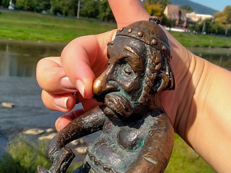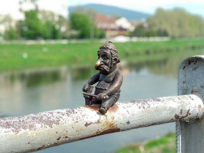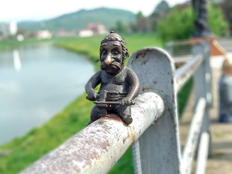 Міні-скульптура “Кельт” розташовується на перилах мукачівської набережної, на її фоні видніється гора Ловачка (GPS: 48.44376373 22.71705627).